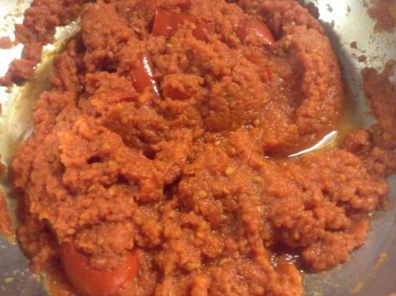 Nosotros hemos pasado la mañana en casa, unos jugando y la otra (yo) haciendo salsa de tomate, de la de enfoscar paredes que dice Rosa :lol:, para la cena de esta noche. Luego os pondré fotos ;) De momento, os presento el tomate con pimiento, si le doy la vuelta a la sartén, el tomate tardaría bastante en deslizarse ;)
