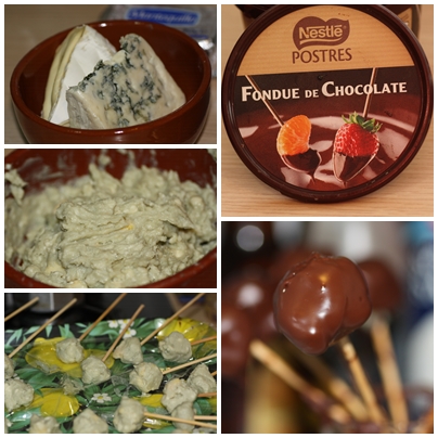 Metemos el Chocolate para fondue en el microondas según las instrucciones del fabricante y cuando está ya en su punto bien líquido, sacamos la bandeja con los bomboncitos de queso y los pinchamos cada uno en una brocheta, los pasamos por el chocolate, dejamos escurrir el sobrante y los vamos colocando en un vaso de forma que la parte del chocolate se pueda secar y enfriar al aire. Cuando tenemos hechos 7 u 8 chupachups, los metemos a la nevera, y seguimos con otro vaso. Procurad que no se toquen unos a otros o al solidificar se quedaran unidos...