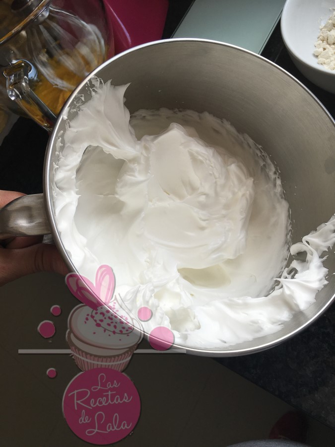 Montamos las claras con los 85 gramos de azúcar restantes.
