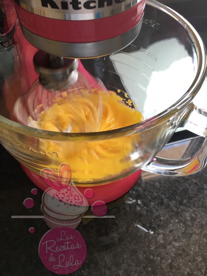 1. Montamos las yemas con la mitad del azúcar.