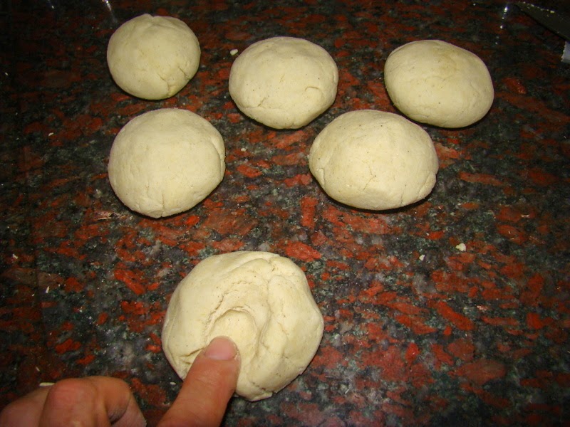 Hacer una masa húmeda pero que no se pegue en las manos, si es necesario humectar la masa para alcanzar el punto indicado agregando agua de a cucharadas, hacer unos bollitos un poco mas grandes que el de la tortilla habitual: