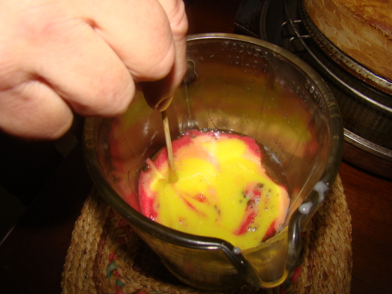 Ahora es el momento de colorear a gusto la mezcla. Para lograr un marmolado hay que separar pequeñas cantidades en cuencos separados con los colores necesarios.