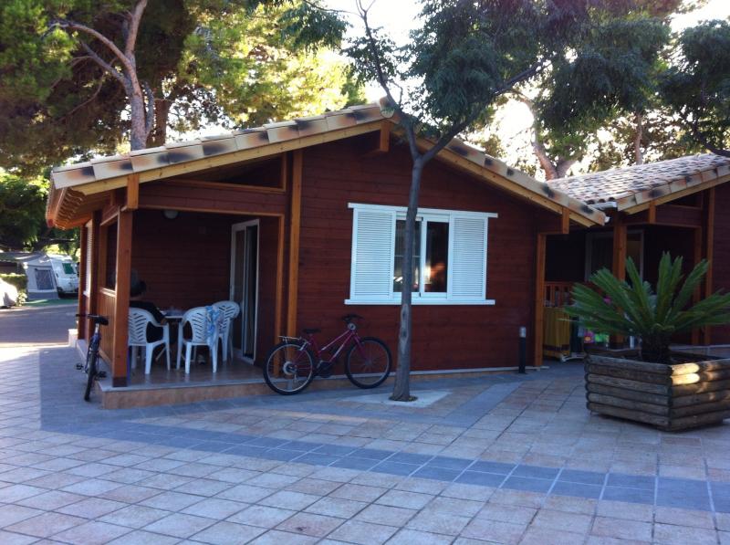 El camping, precioso, limpio, ordenado y muy respetuoso con el descanso del personal. Vamos, que nos ha encantado. Una casita acogedora, algo pequeñita (ya no quedaban más grandes) pero suficiente. Os dejo una fotito para que la veáis