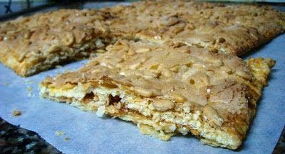 He pulverizado un poco de agua por encima para que piñones y azúcar queden bien pegados a la masa.