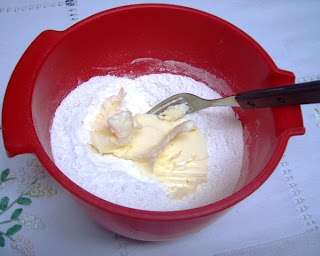 En este mismo bol añadimos la mantequilla y lo empezamos a mezclar con un tenedor.