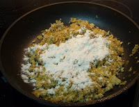 Se añaden 4 cucharadas de harina y se remueve.