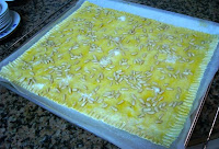 He pulverizado un poco de agua por encima para que piñones y azúcar queden bien pegados a la masa.