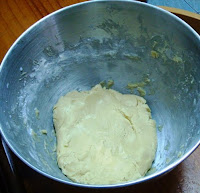 Mezclamos claras y yemas y vamos añadiendo el harina tamizada con la levadura poco a poco, con movimientos envolventes.