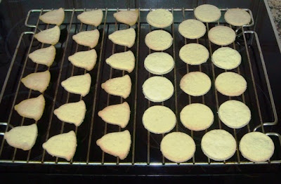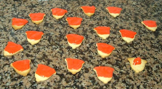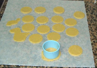 He utilizado un cortador de campana i una redondo, a las galletas con forma de campana les he cortado la bolita y ha quedado una especie de forma de flor.
